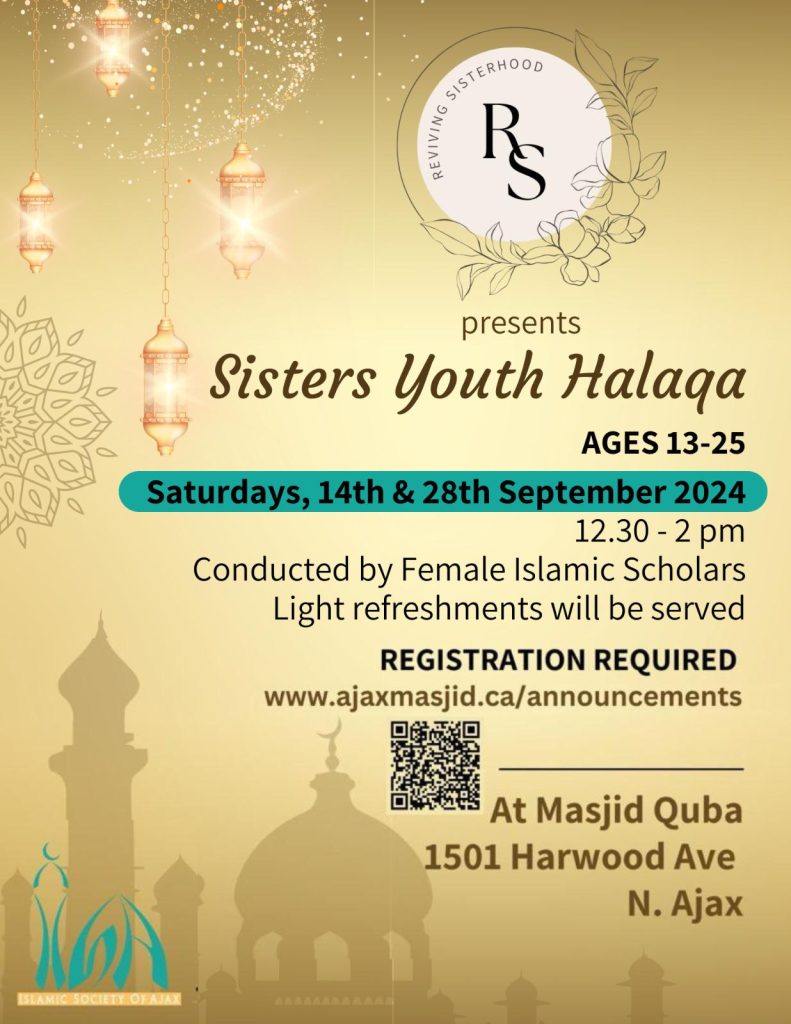 Hosted at Masjid Quba: The sessions will take place at Masjid Quba, located at 1501 Harwood Ave N. Ajax.
