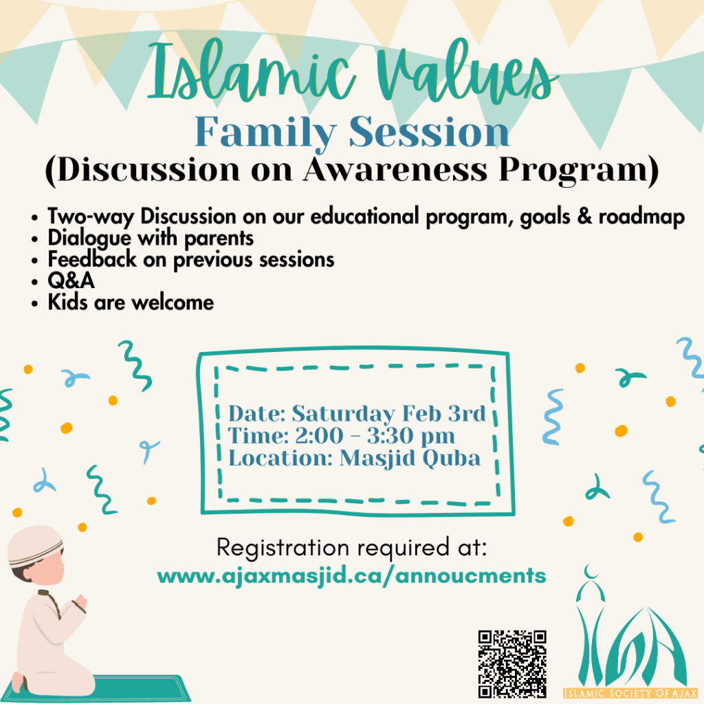 Join us for an engaging Family Session on Social Awareness as part of our Educational Series at the Islamic Society of Ajax. This interactive session will include: