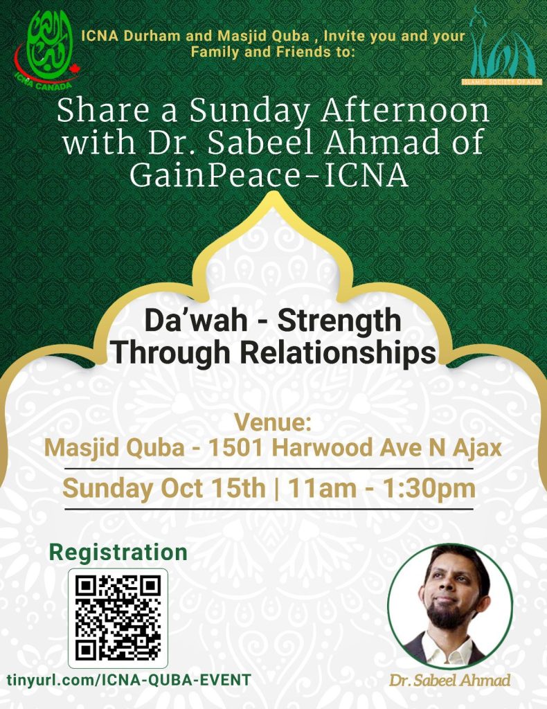 We are pleased to host Dr. Sabeel Ahmad of GainPeace, who will be speaking on the topic “Da’wah – Strength Through Relationship.”