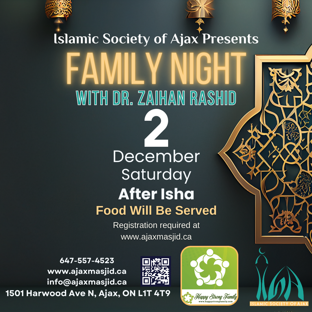Join us for our Monthly Family Night on Saturday, December 2 after Isha Salah. Our special monthly guest is Dr. Zaihan Rashid.